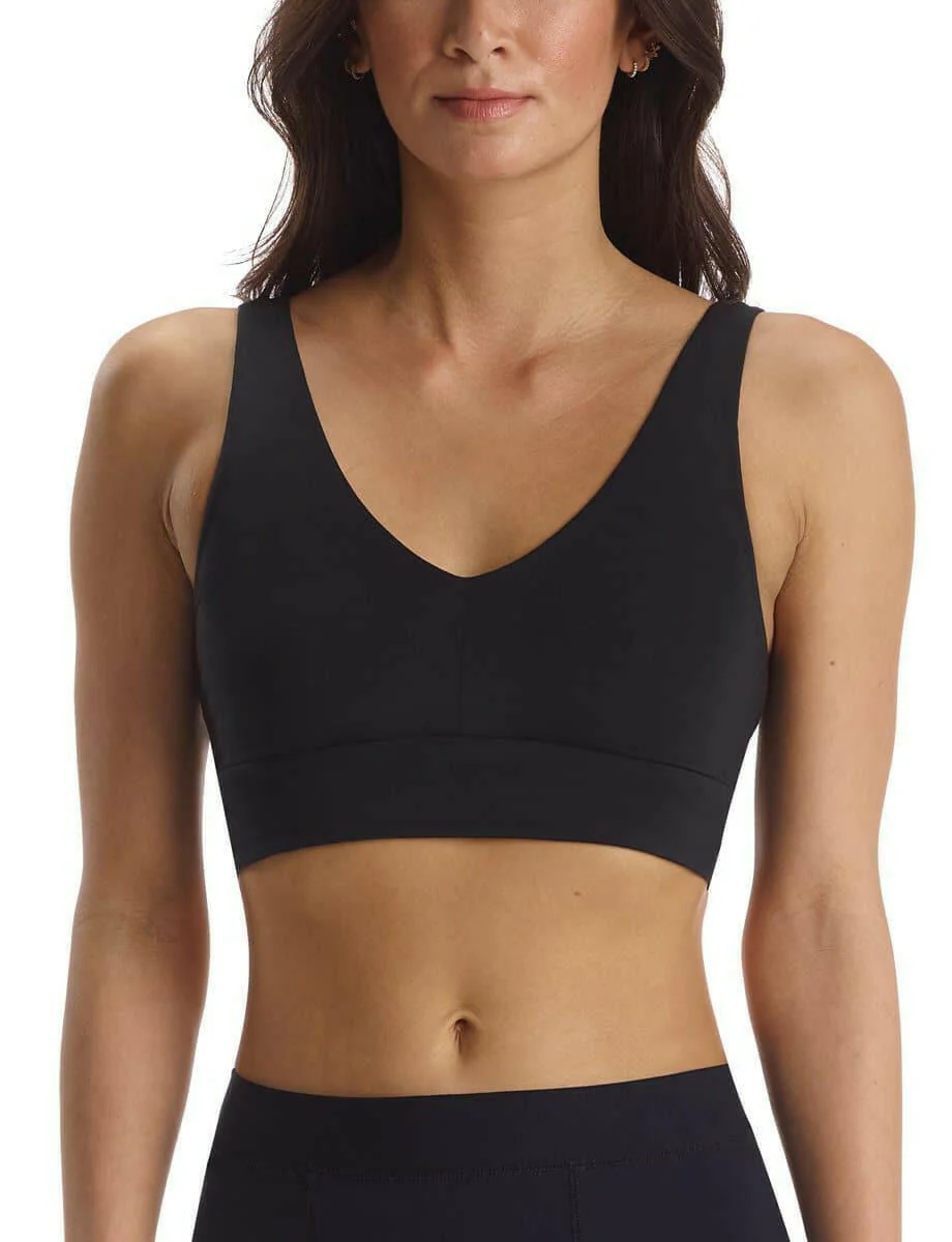 The Butter Comfy Bralette in Black by Commando is constructed in an ultra-soft, double-lined modal that contains four way stretch and is piling resistant. Featuring a molded cup for a superior fit, this longline style bralette is both versatile and comfortable.Â