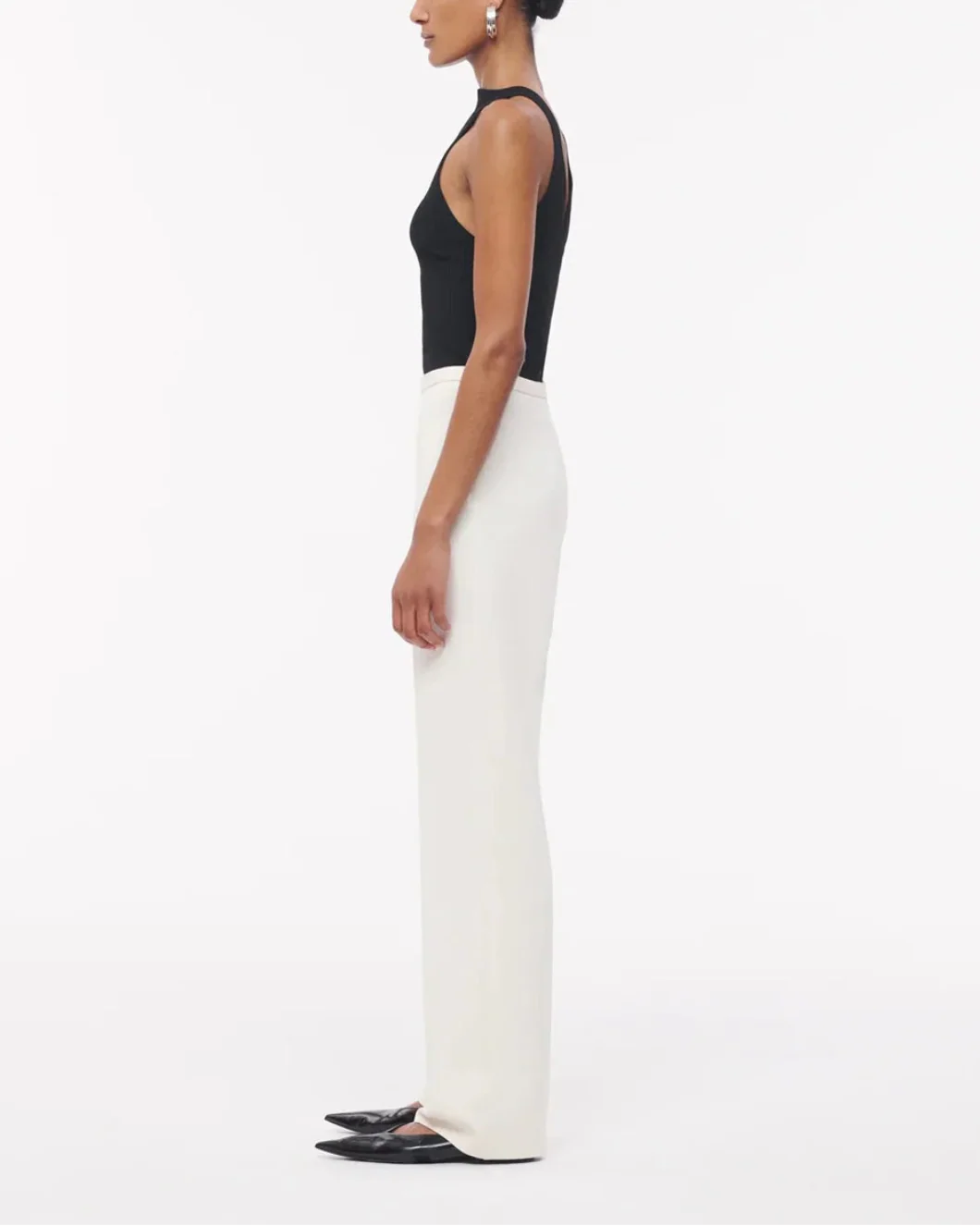The Jersey Pant in Vanilla by Another Tomorrow is a long, slim trouser crafted in a relaxed, unlined bonded jersey for a fluid silhouette.Â