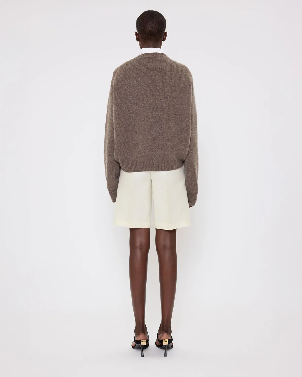 The Ivy Sweater in Mushroom by Arch4 is a crew neck sweater crafted in a heavy weight, chunky knit fabrication with a slightly cropped silhouette, elongated sleeves, and ribbed neckline, cuffs and hem.Â